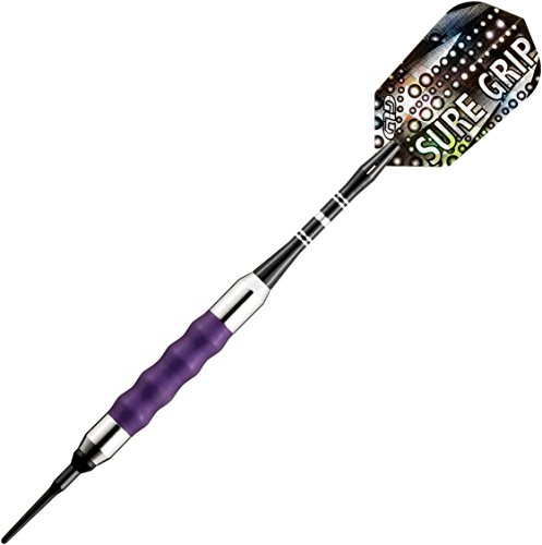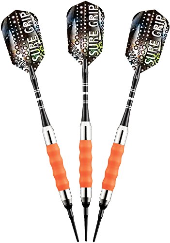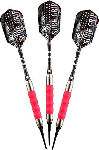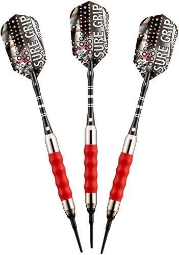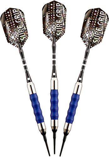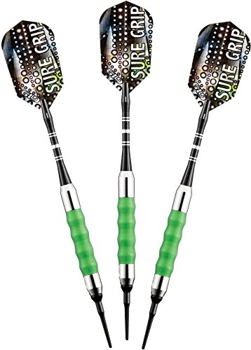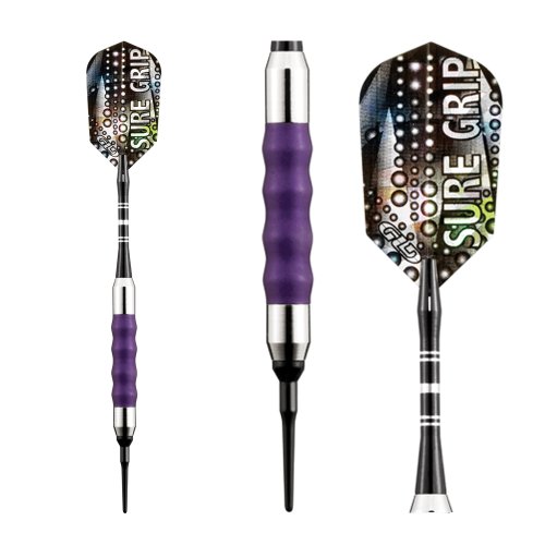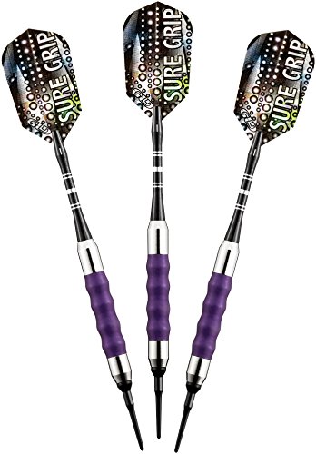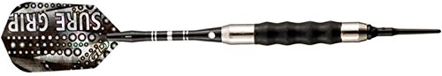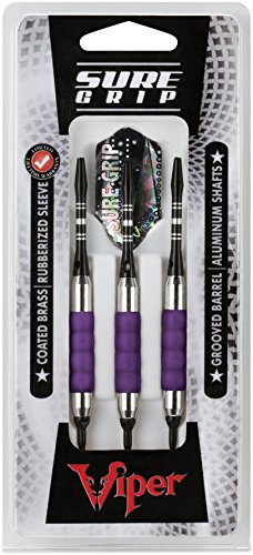 Viper Sure Grip soft tip darts are designed with high quality nickel silver plated barrels that provide exceptional balance and styling. Strategically placed grooves underneath a rubberized barrel sleeve provide excellent high traction gripping points, enhancing your control. Each dart features an aluminum shaft with a locking hole to increase tightness and improve stability. Viper Sure Grip darts include 2BA Tufflex Tips II soft tip dart points and high speed slim flights. The flights are specifically designed to help increase speed and reduce drag, delivering a consistent flight path and pinpoint accuracy. The 2BA Tufflex Tips II soft tip dart points have a reinforced cone that is extremely strong and durable. Simply twist for a tight, secure fitting and easy removal.Feature