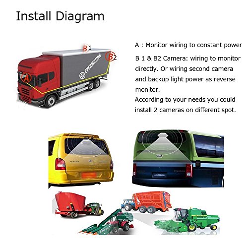 12V - 24V Dual Car Backup System: Upgrade High quality Materials dual backup cameras to view both the hitch and the road behind vehicle. Use for 33 ft length RV/ trailer/ Camper / Lorry / Pickup / Bus etc.