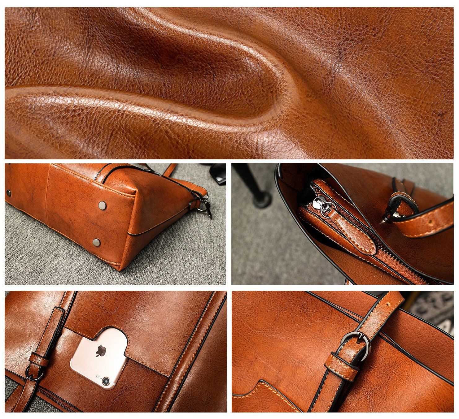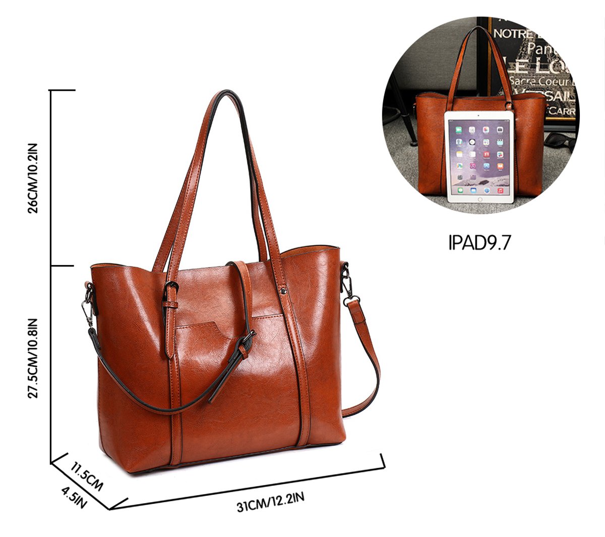 The tote bag adopts PU leather material,