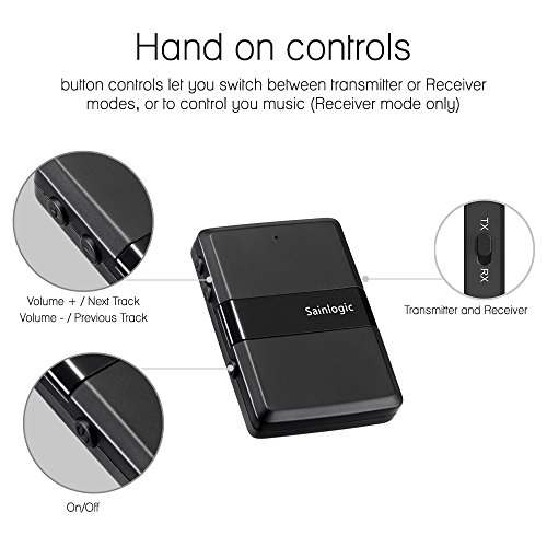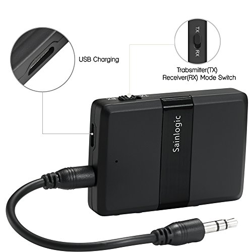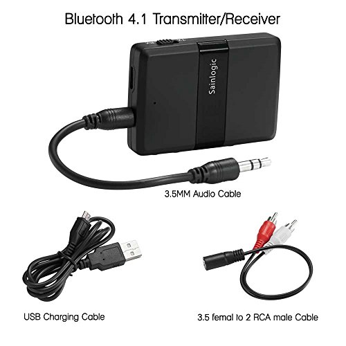 Bluetooth 4.1 Adapter, Sainlogic 2-In-1 drahtloser Bluetooth Sender und Empfanger, mit 3,5 mm Stereo-Ausgang fur Kopfhorer, Lautsprecher, Fernseher, MP3 / MP4, iPod, iPhone, Table