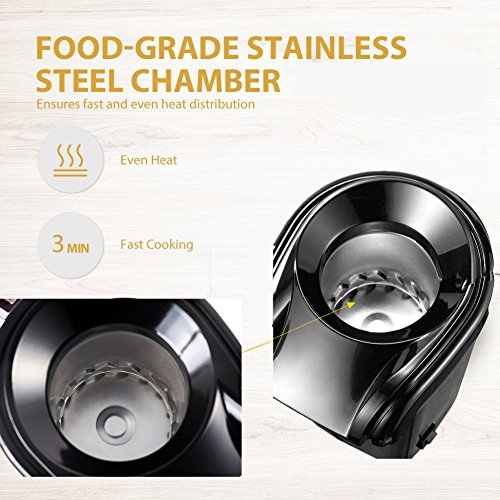 High Efficiency - Using the provide measurement spoon to add 50-80 grams of kernels into the main chamber,turn on the unit and wait for about 2-4 minutes,also you can watch the whole process with the transparent cover
