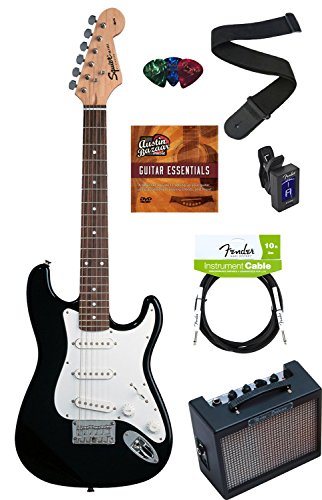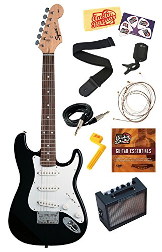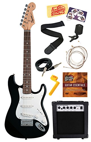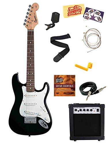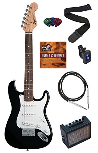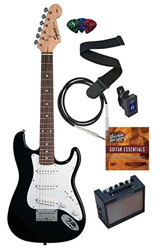 Squier by Fender Mini Strat Electric Guitar Bundle with Amplifier, Cable, Tuner, Strap, Picks, ...