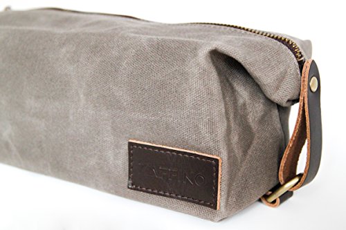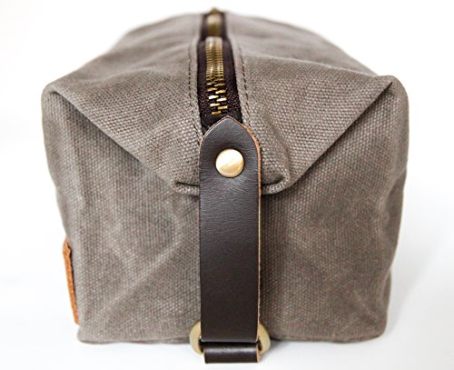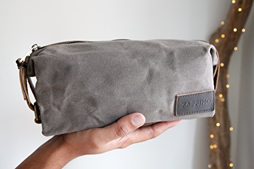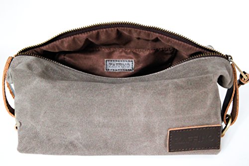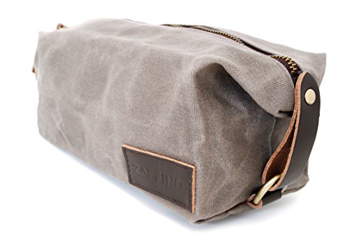 Zaffino Waxed Canvas Genuine Leather Trim Dopp Kit - Unisex Toiletry Bag & Travel Kit