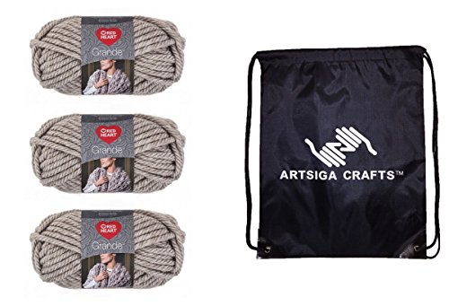 Red Heart Grande Yarn (3-Pack) Oatmeal E826-0307 with 1 Artsiga Crafts Project Bag