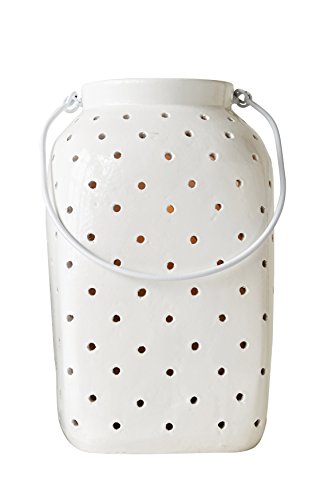 -. Title : Creative Co-Op DA7144 Waterside White Terracotta Lantern with Metal Handle