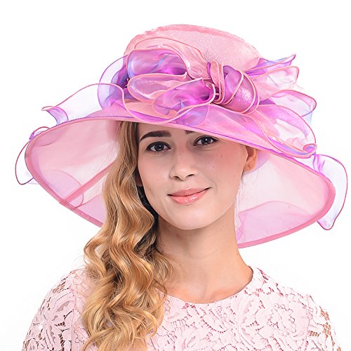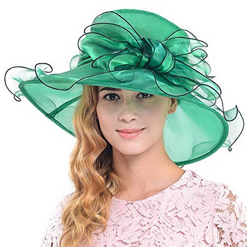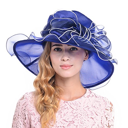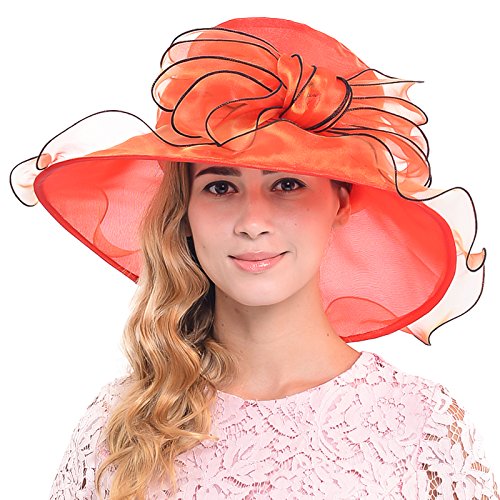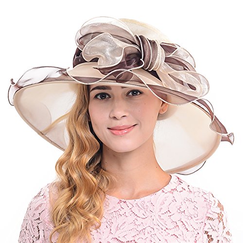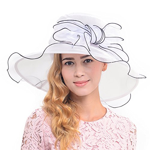 Wimdream Women's Kentucky Derby dress hat large bowkont Wide Brim Organza Hats S039-Y
