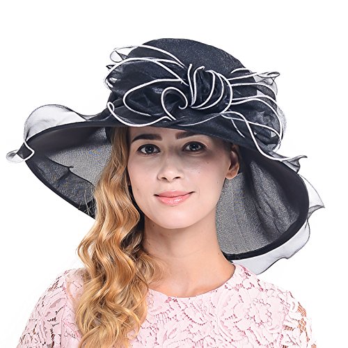 Product Description It is elegant dery hat, made in China, fits for head circumference 57.5cm/22.63inch, the hat is wide brim,large bowkont,elegant and noble, best for wedding party, tea party or Sunday, best gift for yourself or your friends. 0