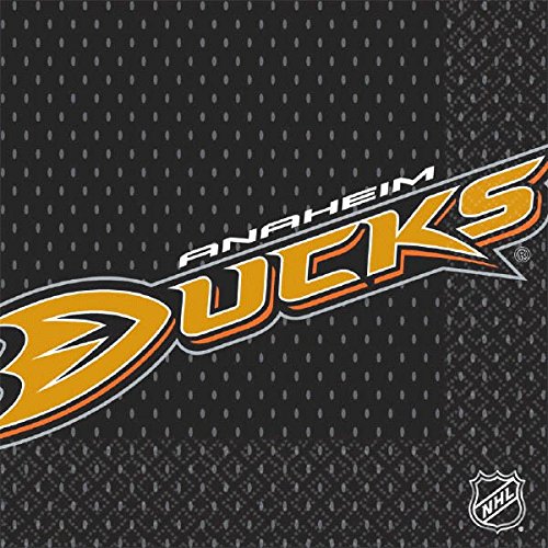 Amscan NHL Hockey Sports Anaheim Ducks Party Luncheon Napkins (16 Piece), Black, 6.5 x 6.5"