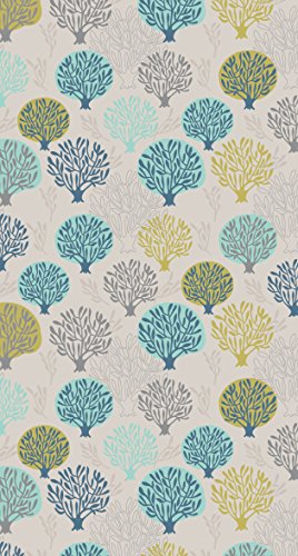 - Tree shapes and silhouettes in shades of light turquoise, sage green, charcoal gray and silver