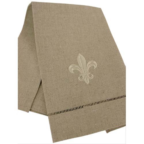 Oatmeal Fingertip or Guest Towel with Beige Fleur de Lis Embroidery 14 by 22 inches