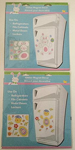 Easter Refrigerator Magnets Bundle Glitter Accented Bunny And Chick 2 Pack
