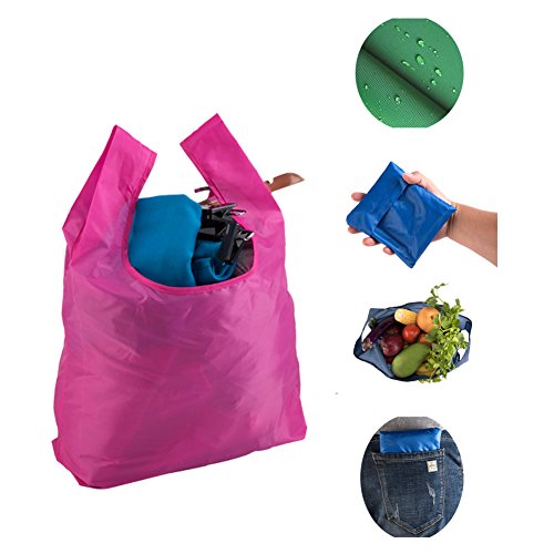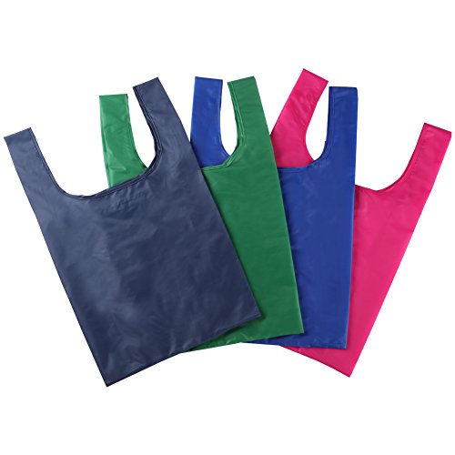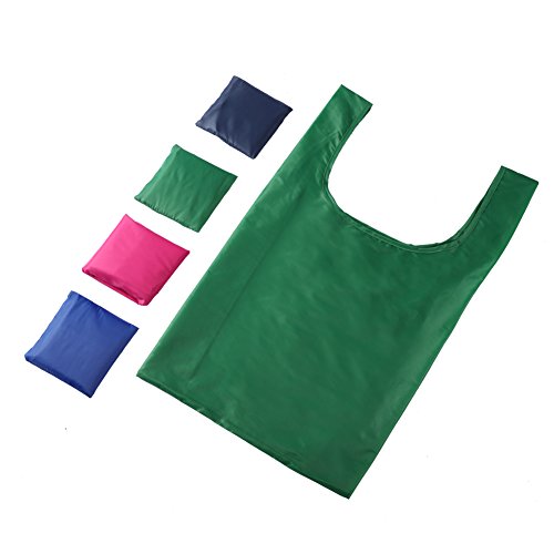 Shopping Bags Reusable Foldable Grocery Bags Eco-Friendly Bags Tote Travel Bags Carry Bags Handy Bags Folded to the Square Shape Pouch with Various Color Put into Pocket Easily Pack of 4