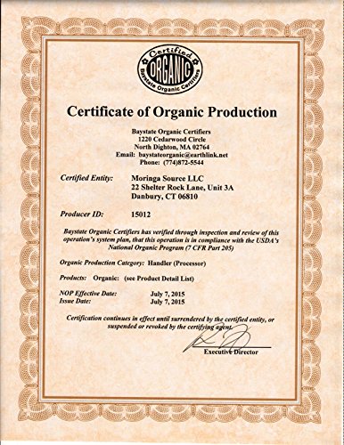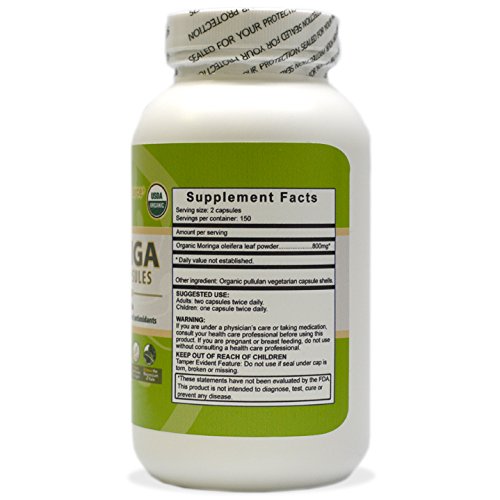 • USDA ORGANIC: Raw Ecuadorian Moringa in Vegetarian V-cap capsules. Vegan, GMO, and gluten free!