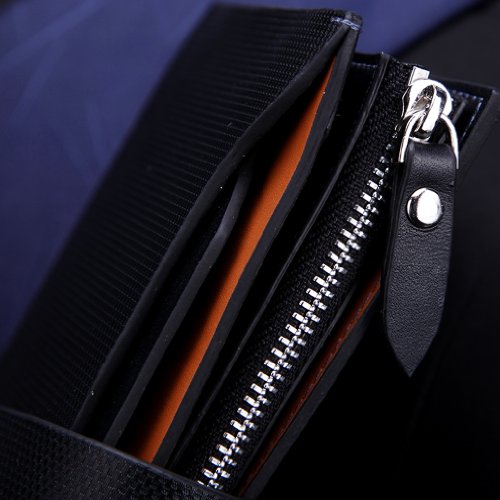 - Feature : Material: Genuine Leather / Color: Brown/Black/Blue / Size: 19cm×10.5cm×2.5cm (4.52"×3.93"×0.59") / Structure:This wallet come with a removable driver's license's holder which is visible in 2 sides. There are 12 card slots, 2 receipt holder, 1 cash holder.