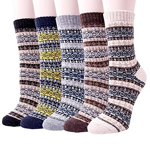 -. Feature : Packing Contents:5 pairs socks (mix colors) / Softness and flexibility with the jacquard weave blend of rabbit wool / Comfortable, lightweight,and versatile enough for any occasion. These rabbit wool socks feature stylish patterns and vibrant colors which put a fun finishing touch on your outfits / Suitable for autumn and winter, elegant, fun, trendy and unique designs. Designed for comfort and style / These socks are standard American sizes that fit shoe sizes from 5 to 10, so everyone can enjoy warm, toasty feet