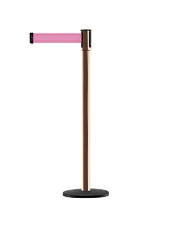 Tensabarrier - 890B-33-2P-2P-MAX-NO-F3X-C - polished brass post, 2" wide, 13' length Florescent Pink belt