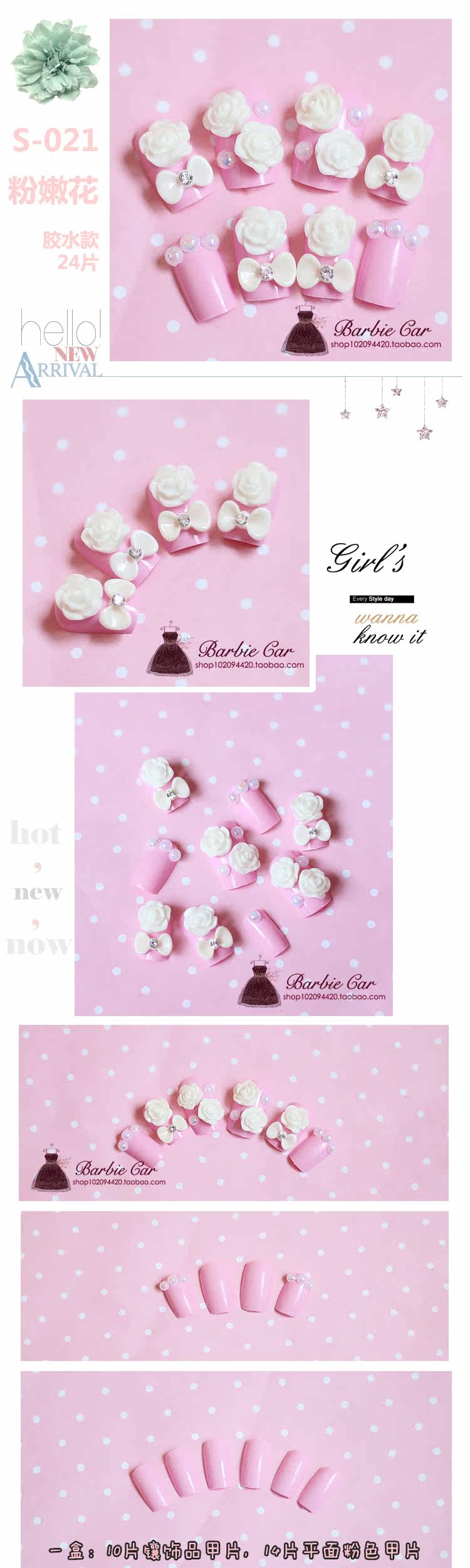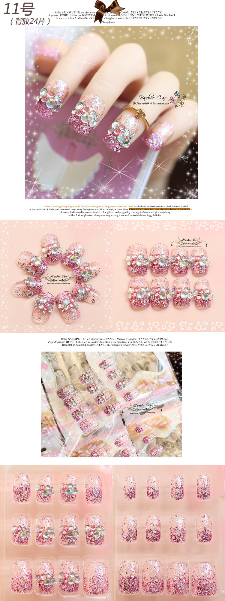 Nail effort: 12 pink, 12 transparent color, wear super good!