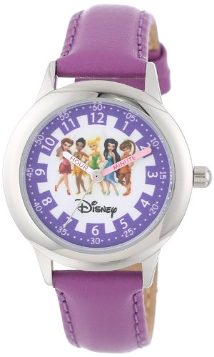 -. Binding : Watch -. Brand : Disney -. Color : White -. Department : girls -. EAN : 0843231060029 -. Feature : Round Time Teacher Stainless Steel Watch with Disney's Fairies characters on dial. / Meets or exceeds all US Govt requirements and regulations for Children's watches. / Recommended for Ages 3-7 years old. Includes a Time Teacher Punch Out clock for Parents to Teach their Children. / Accurate Japanese Quartz movement, scratch resistant mineral crystal, leather strap / Water Resistant to 99 feet: withstands rain and splashes of water, but not showering or submersion. / 1 Year Limited Manufacturers Warranty -. Label : Disney -. Manufacturer : Disney -. Model : W000079 -. MPN : W000079 -. NumberOfItems : 1 -. PackageQuantity : 1 -. PartNumber : W000079 -. ProductGroup : Watch -. ProductTypeName : WATCH -. Publisher : Disney -. SKU : B005OVEXOO -. Studio : Disney -. Title : Disney Kids' W000079 "Fairies Time Teacher" Stainless Steel Watch with Purple Leather Band -. UPC : 843231060029