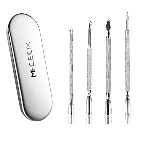 Mikobox Premium 4 Piece Double Ended Stainless Steel Manicure Cuticle Pusher Remover Kit MB-03