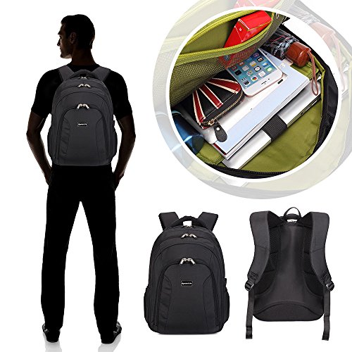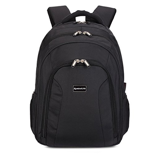 -. Binding : Electronics -. Brand : SymbolLife -. Feature : Large multi-compartment backpack with a padded sleeve for laptops, adjustable padded laptop straps inside to fit different size laptops / Open Viewing Compartment: Unique quick recognition window design accommodates most 17" laptops / Airflow Back System: Multi-panel airflow design provides extra padding for comfort and maximum back support / Size: 44*32*15 cm, 17.3*12.6*5.9 in (H*L*W), Material: high quality and durable Nylon / Organizer Pocket: Interior organizer provides divider pockets for pens, pencils, cell phone and CD's, zippered water bottle pockets at side -. Label : SymbolLife -. Manufacturer : SymbolLife -. PackageQuantity : 1 -. ProductGroup : CE -. ProductTypeName : CONSUMER_ELECTRONICS -. Publisher : SymbolLife -. Studio : SymbolLife -. Title : SymbolLife Laptop Computer Backpack - Fits Most 17 Inch Laptops and Tablets