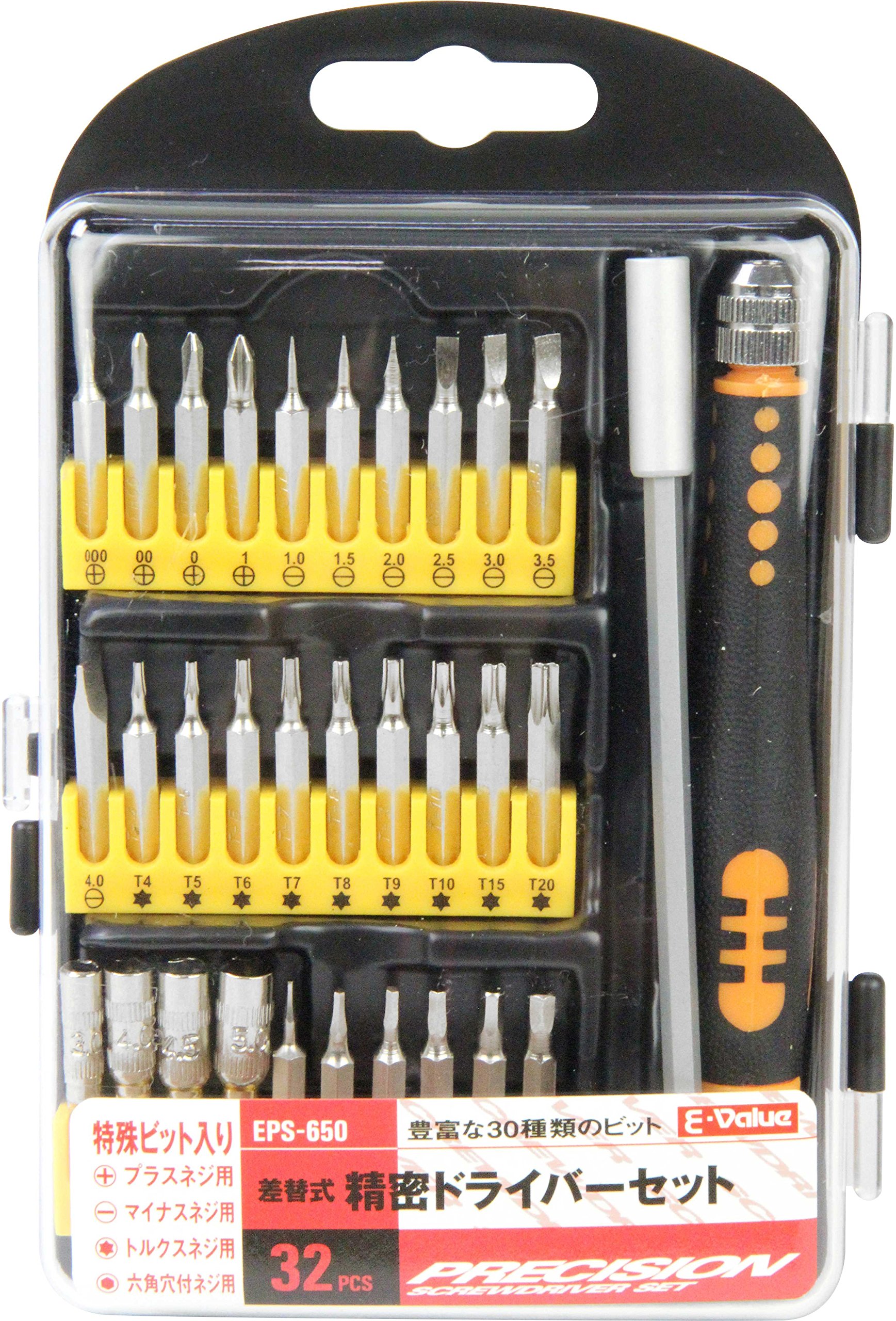 A set of thirty kinds of bit · sockets that correspond to every screw.