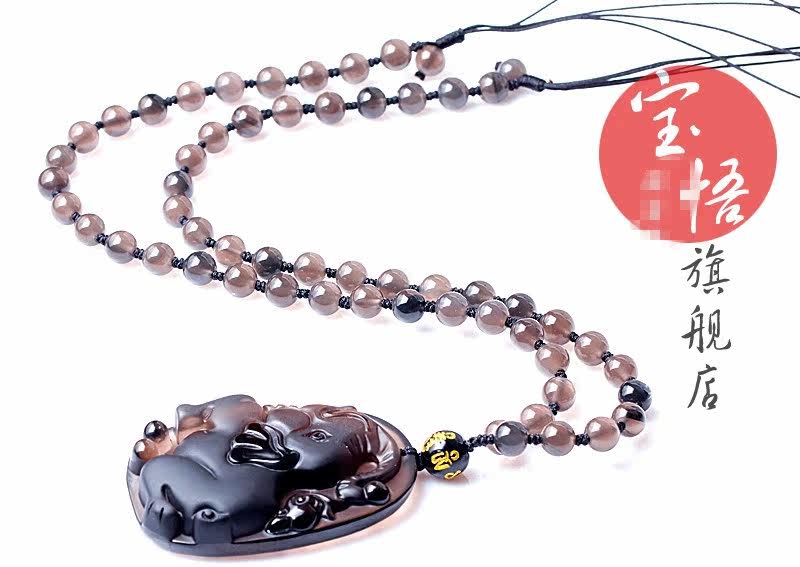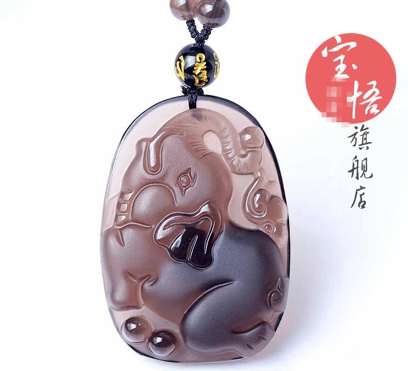 开光冰种黑曜石大象吊坠 吉象采珠吊坠