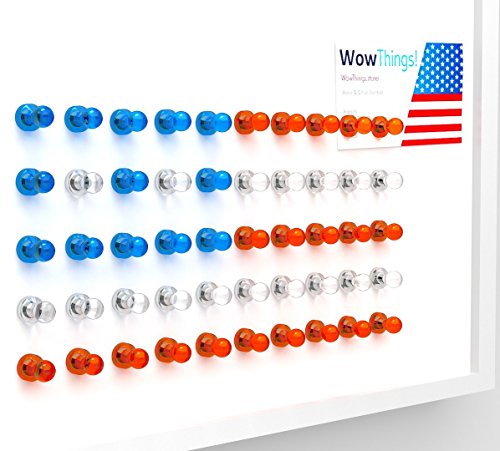 - 🌈 INSPIRE TO CREATE: It’s easy to organize the importance of your notes and letters with these bright colored magnets. You and your family members can make a USA flag or other funny decorative shapes on the fridge with this cute magnets. The magnetic pins can be used by adults and children for different projects.