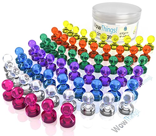 Push Pin Magnets For Fridge, Map & Whiteboard , 65 Pack 7 Colors, Strong Small Neodymium Color Magnetic Push Pins, Perfect For School, Classroom & Office