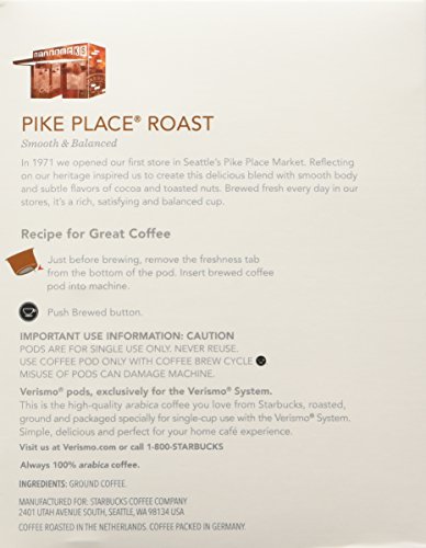 -. Brand : S.T.A.R.B.U.C.K.S Verismo Pods 96 Count (Pike Place)