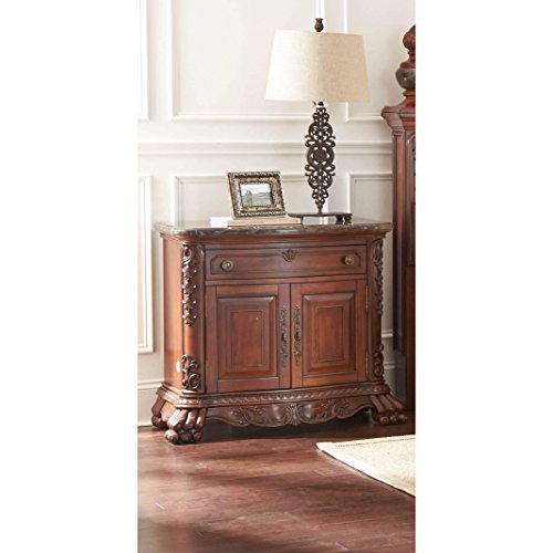 Studio : LYKE Home Publisher : LYKE Home Product Description With elements of Louis the XIV styling, the Kelly Bedroom Collection made with select veneers, and an aged distressed dark cherry finish make this bedroom at home in any antique collection. The ribbon and shell motif, symbols from the house of the Bourbon king, are exquisitely carved in the bed and drawers and is reminiscent of some of the great historical furniture pieces of the 18th century. Furniture Room: BedroomMaterial: Wood, MetalStyle: ContemporaryAssembly: Assembly RequiredSize: 1-drawerFinish: Cherry FinishColor: Brown 0