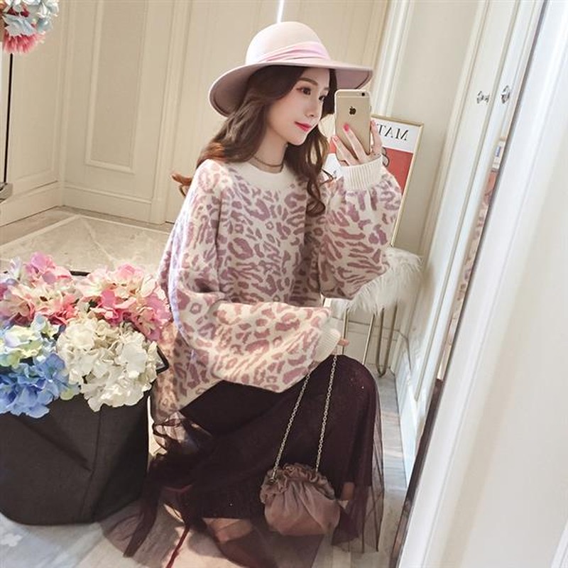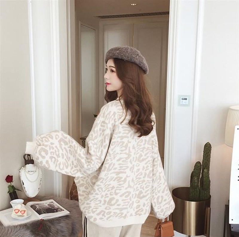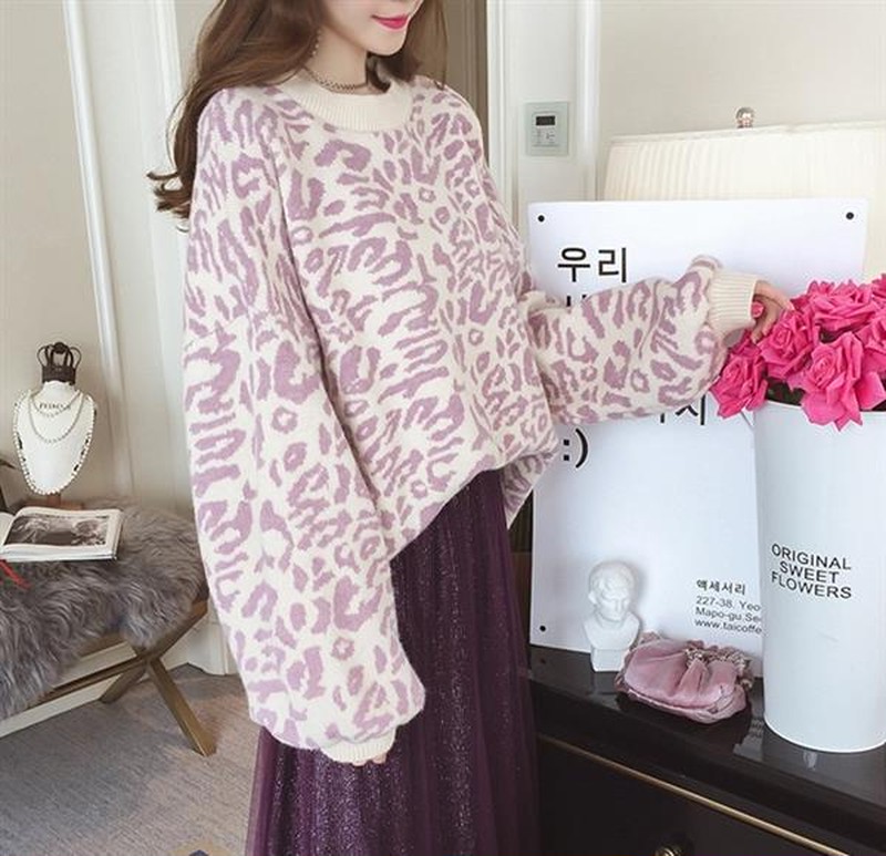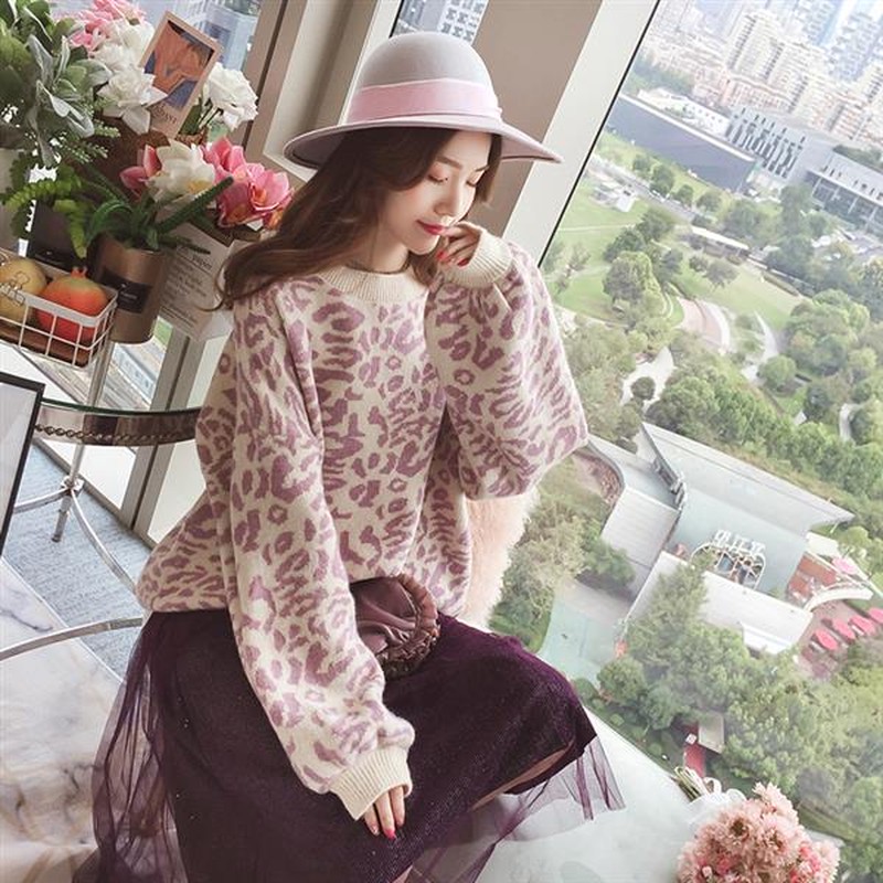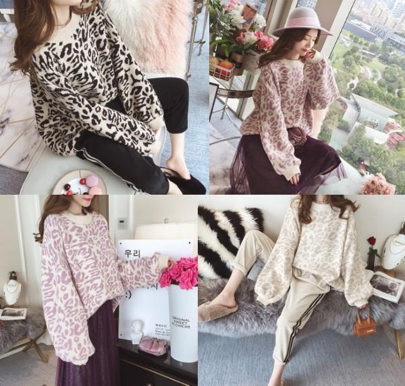 ♢ポイント♢ ヒョウ柄のラウンドネック長袖ニットトップスです。 ワイドスリーブがアクセントのお洒落なアイテムです♪