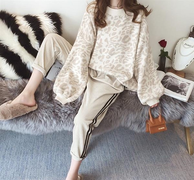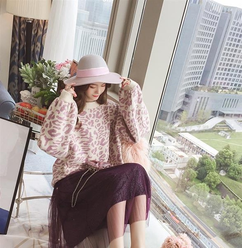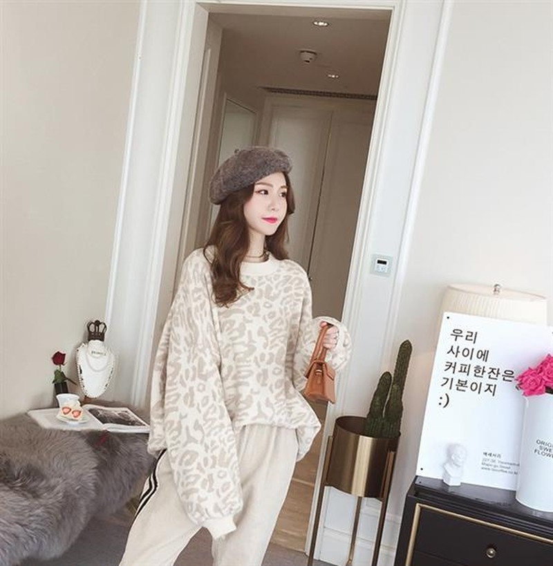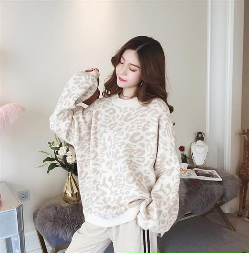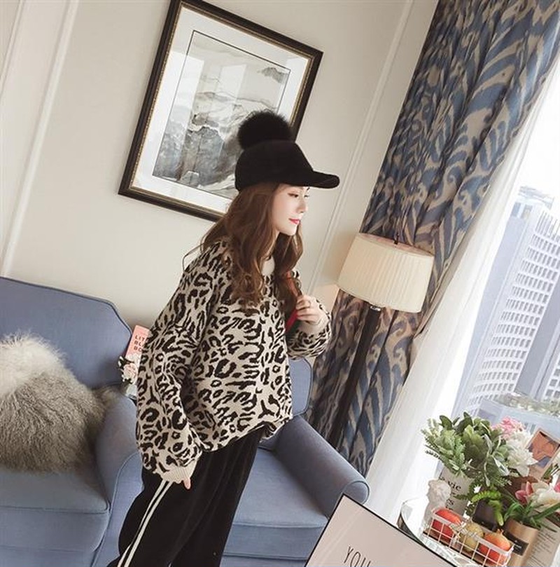 ♢ポイント♢ ヒョウ柄のラウンドネック長袖ニットトップスです。 ワイドスリーブがアクセントのお洒落なアイテムです♪