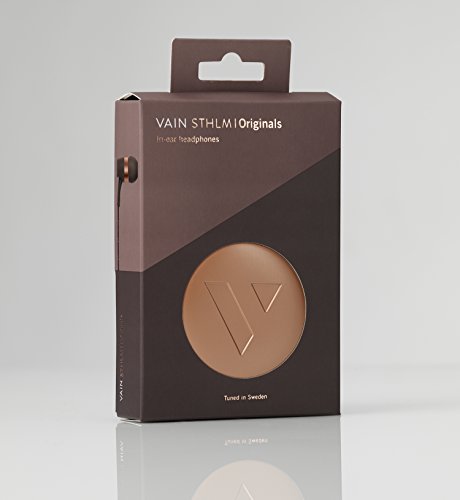 -. Feature : VAIN STHLM Originals In-ear headphones have been a full year in the making, with a heavy focus on creating a unique product that combines high fashion design and a first-class sound experience. / Designed in Sweden - beautiful copper details to invoke a classic yet high-fashion feel and Swedish heritage. / Tuned in Sweden - the audio experience of VAIN STHLM Originals is truly first-class, with deep heavy bass, excellent treble, and a perfectly balanced midrange. / Magnetic Ear-Pieces, connect together. With this smart feature you can connect your Originals around your neck when not listening. No more tangled cords. / Microphone & Remote. Easily switch between phone calls and music using the remote control on the microphone. This built-in feature also allows you to turn music off and on, or change songs with the simple push of a button.