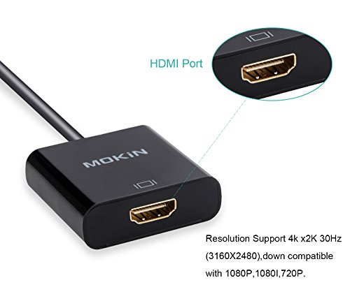 - 2.This adapter can be used for laptop. Gold-Plated HDMI Port: Resists corrosion, providing rigidity and better signal performance. Resolution Support 4k x2K 30Hz (3160X2480), down compatible with 1080P,1080I,720P. Hight Compatibility: support most display,monitor,projector,tv with HDMI Port.