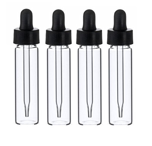 4-Pack of 3.75" inch tall / 4 Dram / 1/2 oz / .5 oz Clear Glass Dropper Vial Containers 15 mL