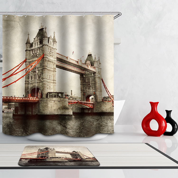 1 x Vintage Bridge Shower Window Curtain(with Hooks)