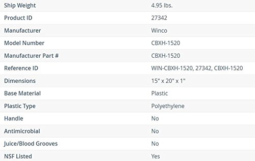 Winco Cutting Board, 15 by 20 by 1-Inch, White