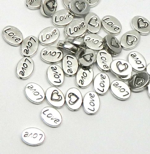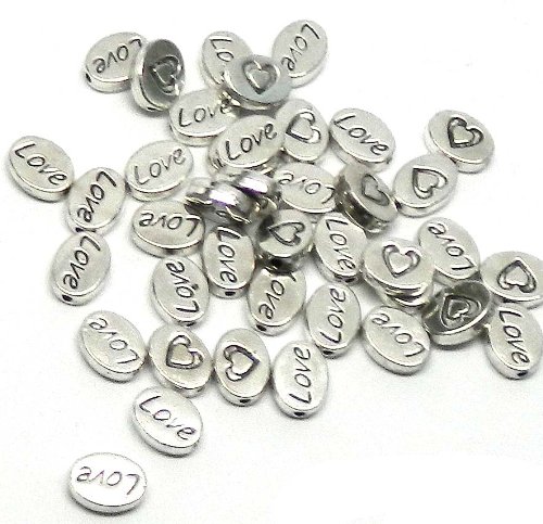 Rockin Beads Brand, 38 Oval Love Heart 8x10mm Antiqued Silver Beads Cast Zinc Metal Spacer Beads (Approx 1.2mm Hole)