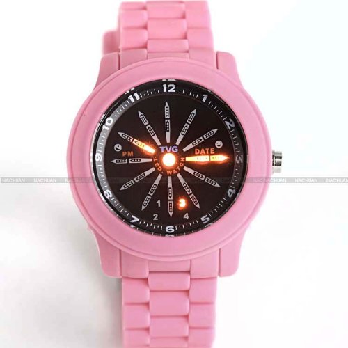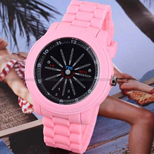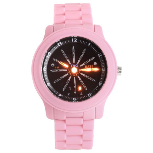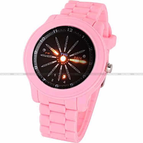 AMPM24 TVG LED Digital Date Lady Mens Women Jelly Pink Silicone Sport Wrist Watch Gift LED085