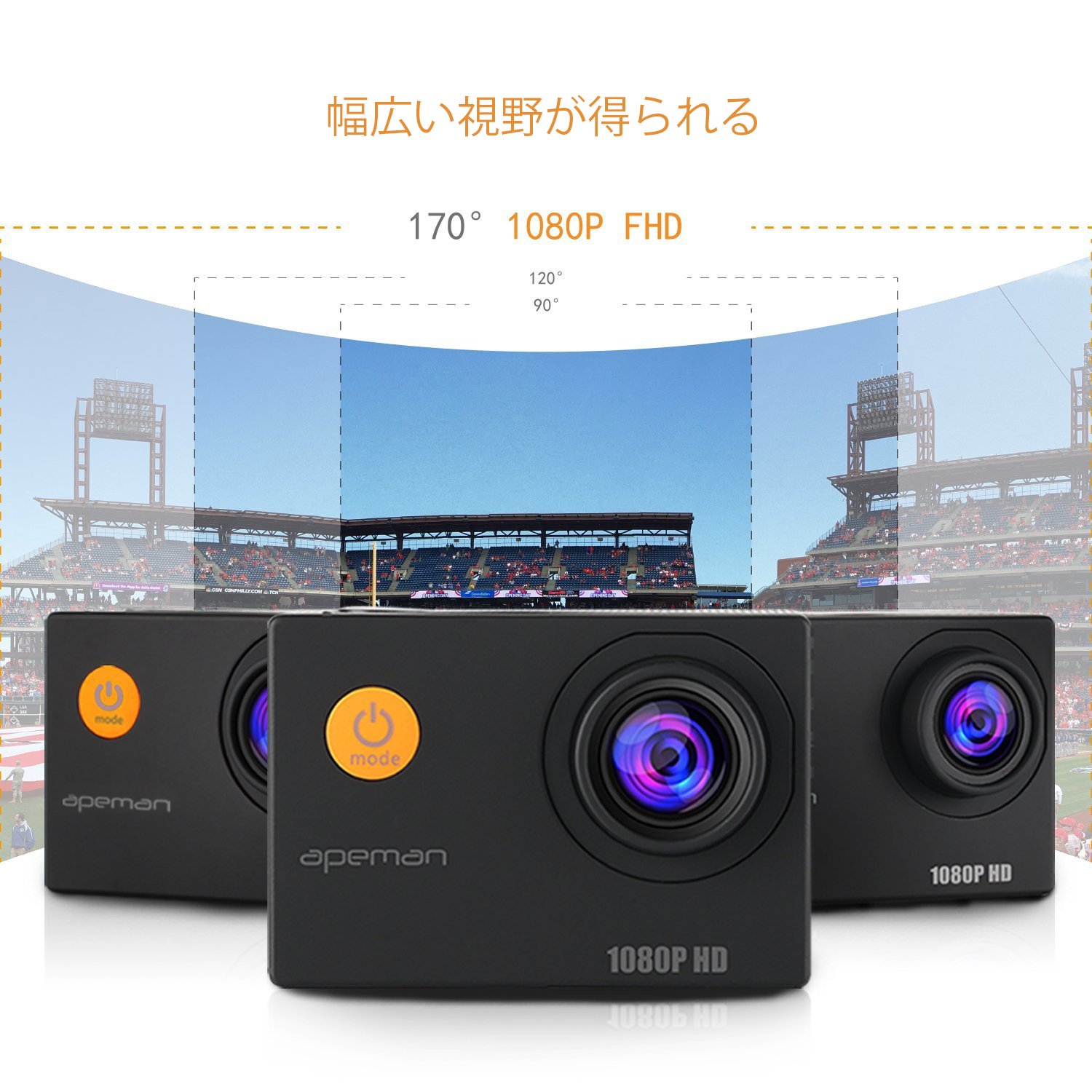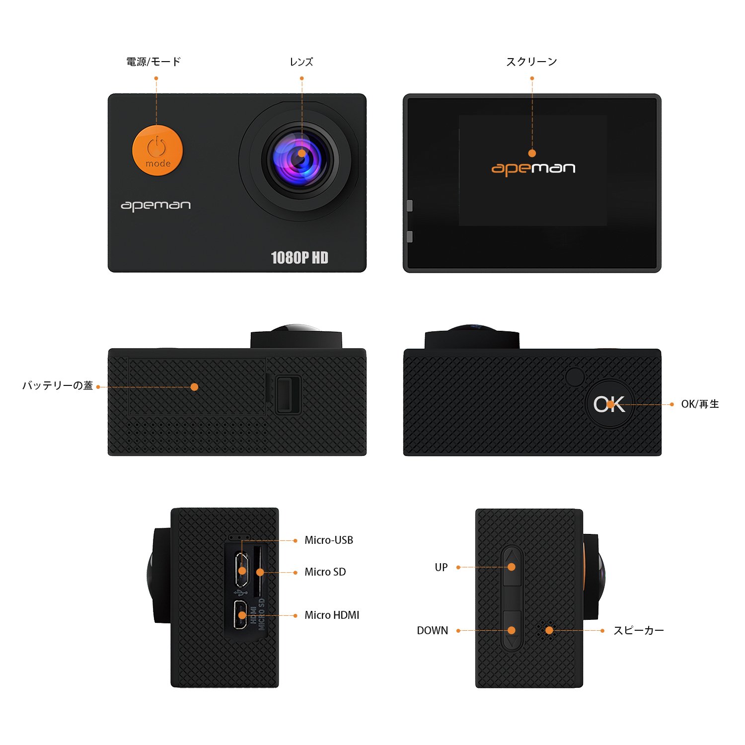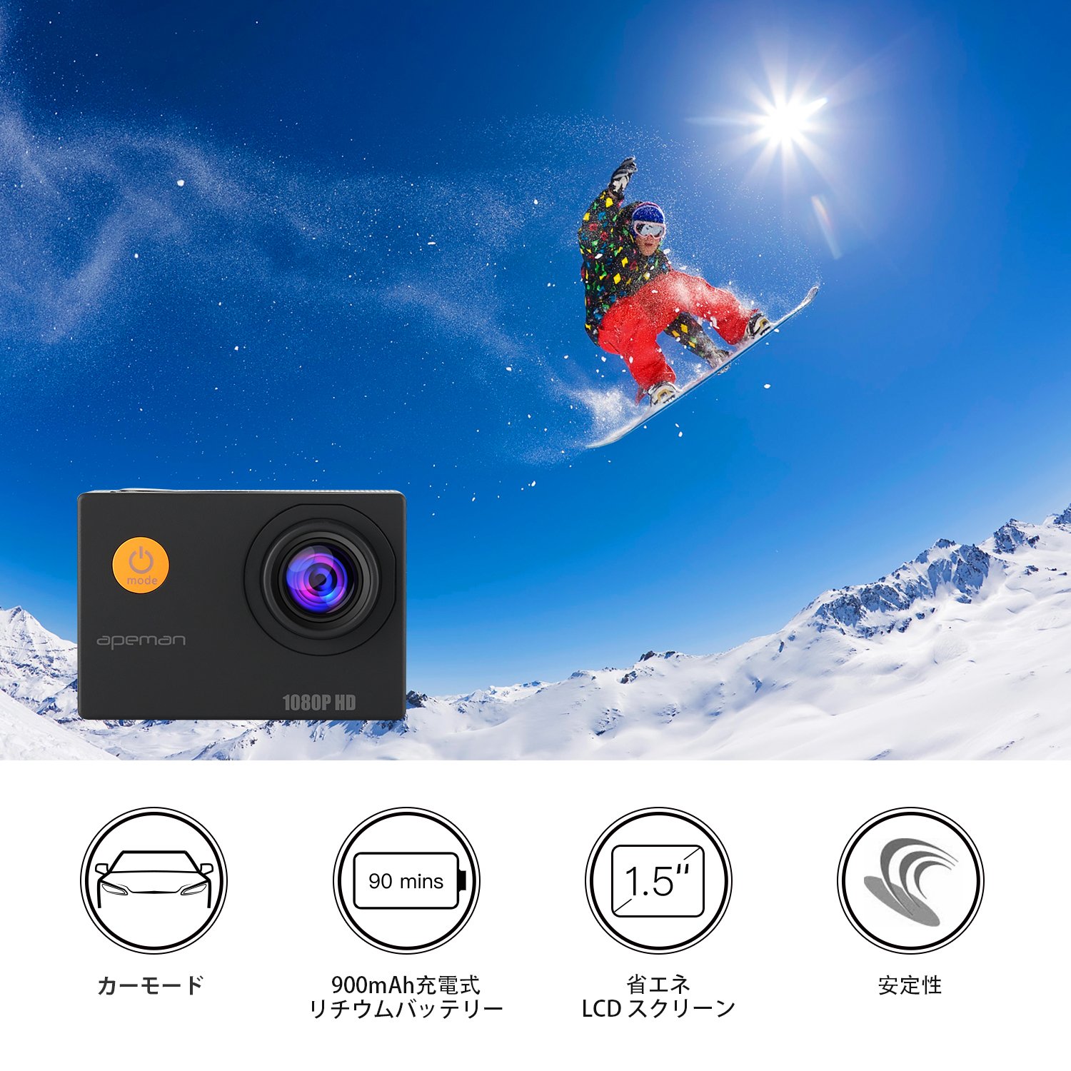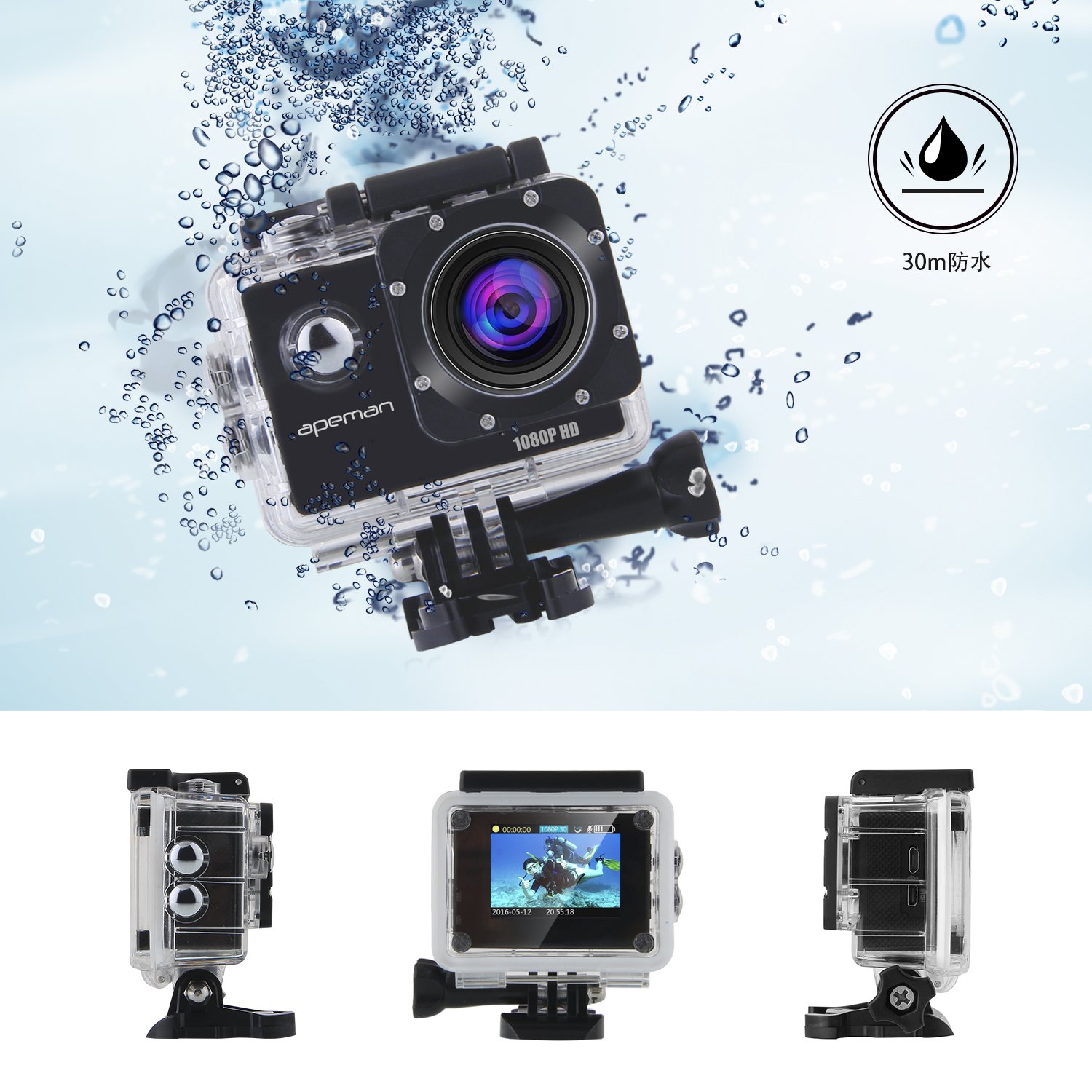 APEMAN action camera A66: 1200 pixels + 1080p full HD high image quality + 170 degrees wide angle lens +1.5 inch LCD + cospa high