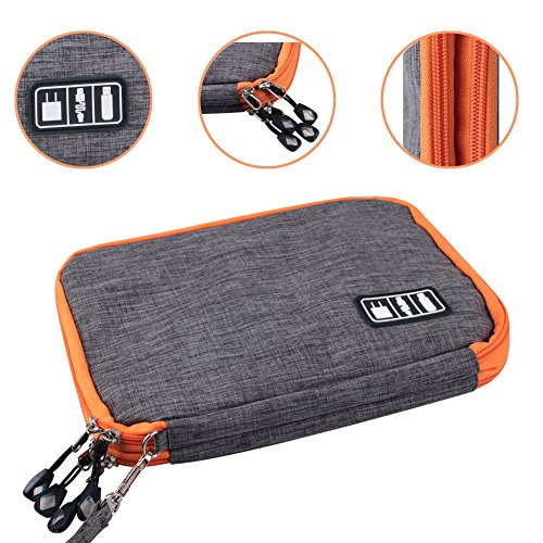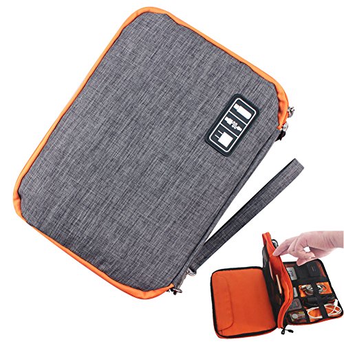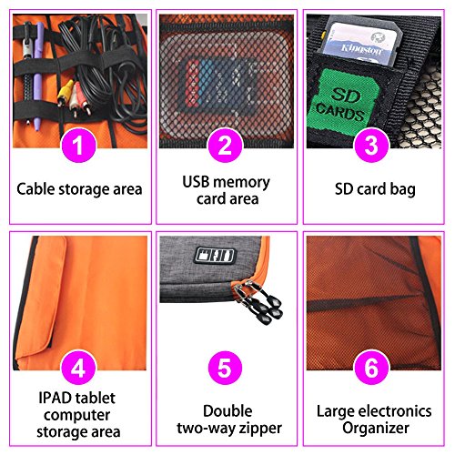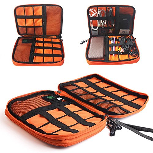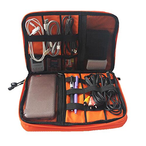 Large capacity: the product size is 11 * 7.87 * 1.38inch. Can accommodate data lines, charging lines, 2.5 inch external hard drive (HDD), SSD card, CF card, tablet PC, iPad, rechargeable treasure (13 * 10cm) or mobile phone.