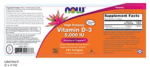 Product DescriptionNow Foods VITAMIN D-3 5000 IU - 240 SOFTGELS0