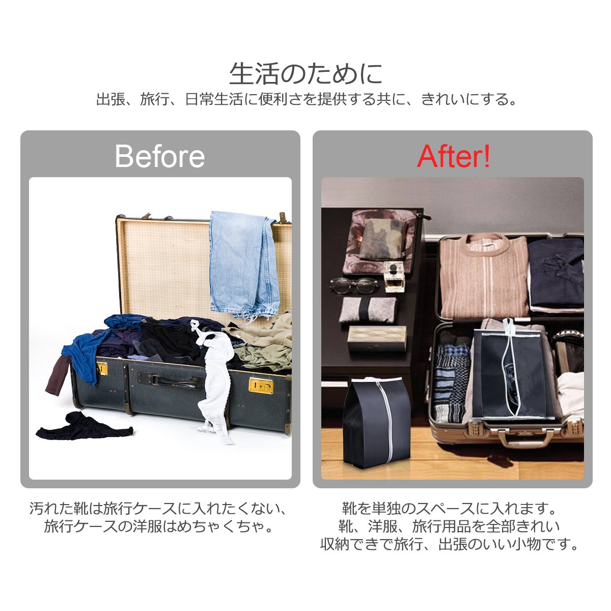 Shoes, clothes, travel goods can be stored all cleanly, it is a small thing with good travel, business trip.