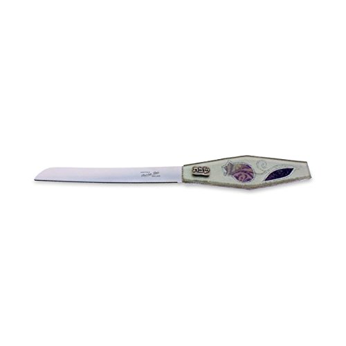 Sparkling Challah Knife with Purple Pomengranate Design Glass Handle