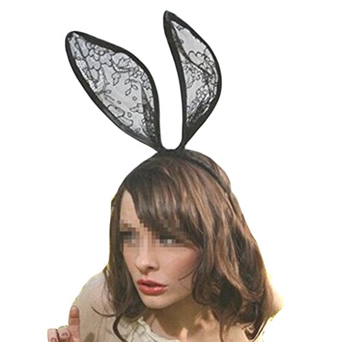 Package Include: 1pcsGoege Sexy Black Lace Headband Sweet Bunny Rabbit Ear Hair Band for Wedding Party Cosplay Costume