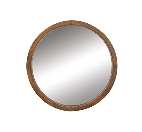 Deco 79 77126 Round Iron and Wood Wall Mirror, Brown/Mirror