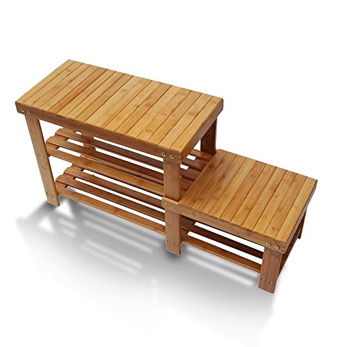 -. Brand : Lykos -. Color : Bamboo -. Feature : Well-designed shoe rack, acting as a stool as well / Premium bamboo is sustainable a kids or an adult / With different heights for satisfying kids and adults / Strip style makes the shoe rack stylish in look / It helps to keep your shoes in order and make your house tidy and neat -. Label : Generic -. Manufacturer : Generic -. PackageQuantity : 1 -. ProductGroup : Furniture -. ProductTypeName : HOME_FURNITURE_AND_DECOR -. Publisher : Generic -. Studio : Generic -. Title : Shoe Storage Benches For Entryway Rack Shelf Boot Organizer Bamboo Hallway Bench