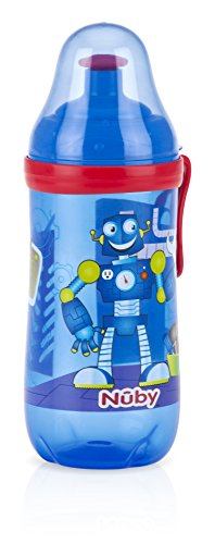 -. Binding : Baby Product -. Brand : Nuby -. Feature : Hygienic cover and belt clip make traveling with baby easy / Pop up spout promotes hand eye coordination / 6+ Months / 2 Pack / Colors may vary. You will receive one of the following colors/characters: Blue cup with robot print, Green cup with turtle & bee print, Aqua cup with mermaid print -. Label : Nuby -. Manufacturer : Nuby -. ProductGroup : Baby Product -. ProductTypeName : BABY_PRODUCT -. Publisher : Nuby -. Studio : Nuby -. Title : 2 Pack Busy Sipper cup with Pop-Up Sipper Spout and Cover