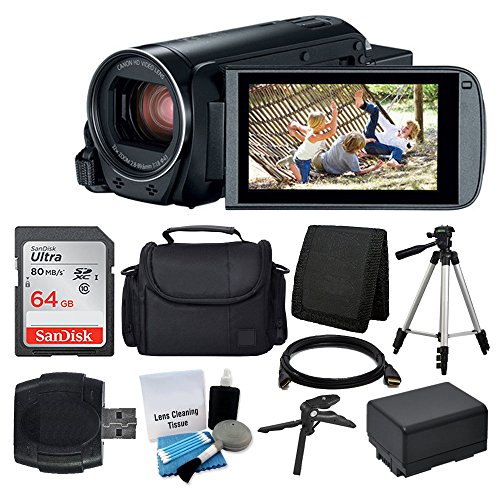 Canon VIXIA HF R800 Camcorder (Black) + SanDisk 64GB Memory Card + Digital Camera/Video Case + Extra Battery BP-727 + Quality Tripod + Card Reader + Tabletop Tripod/Handgrip + Deluxe Accessory Bundle