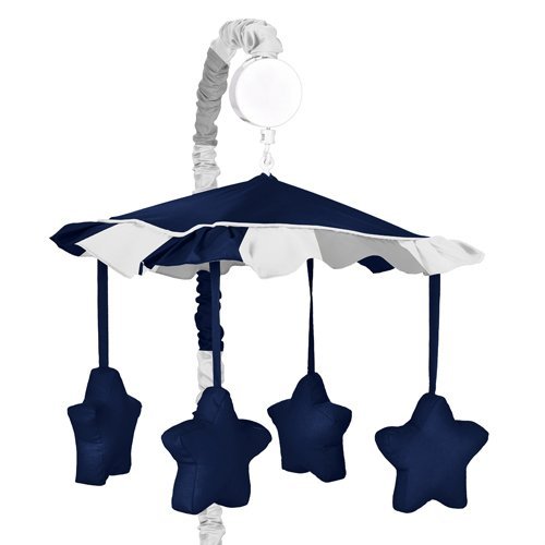 Sweet Jojo Designs Modern Navy and Gray Stripe Musical Baby Crib Mobile